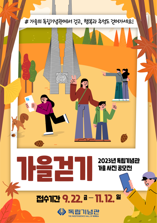 [충청뉴스 박동혁 기자] 독립기념관은 기념관의 아름다운 자연경관을 알리기 위한 ‘가을 사진 공모전’을 개최한다고 22일 밝혔다.