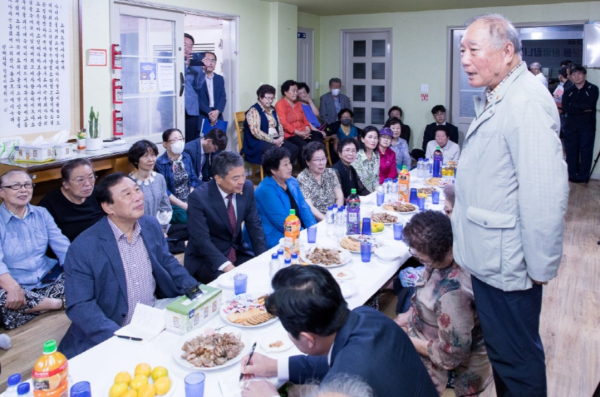최민호 시장은 이날 오후 침산3리 경로당을 찾아 30여 명의 주민들과 주차난, 출퇴근 교통난 해소 방안 등에 대해 기탄없이 의견을 주고받았다.
