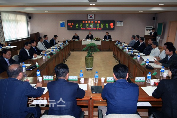 군은 간담회를 통해 당면 군정의 주요현안으로 ▲오관구역 주거환경 개선사업 ▲원도심 공동화 방지 대책 ▲가뭄극복 대책 추진상황 ▲지방행정체제 개편 동향 ▲청운대 제2캠퍼스 설립 동향 등을 보고해 군정에 대한 이해를 높이는 시간을 가졌다.