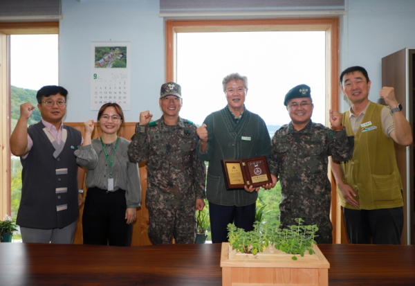 [충청뉴스 최형순 기자] 한국산림복지진흥원(원장 남태헌) 국립산림치유원은 예천지역 집중호우 피해 복구를 위해 긴급 파견된 해병대 1사단(제2신속기동부대) 장병 1천여명의 숙식 및 산림치유서비스 제공 등에 기여한 공로로 육군 제2작전사령관으로부터 감사패를 수여받았다.