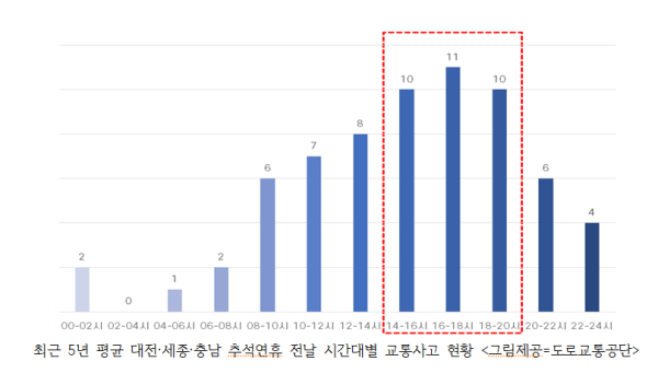 추석 연휴 전날 오후(14시~20시)시간대 교통사고 가장 많이 발생