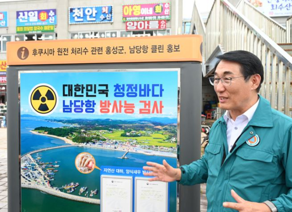 [충청뉴스 권상재 기자] 홍성군은 민족 최대 명절 추석을 맞아 남당항에 많은 관광객이 찾을 것으로 예상됨에 따라 방사능 검사 결과 게시대를 설치하고 클린 바다! 남당항 홍보에 적극 나섰다.