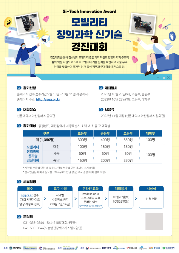 선문대에 따르면 이번 대회는 청소년에게 모빌리티 관련 과학 마인드를 함양하고, 전문가 발굴 및 양성을 위해 열린다.