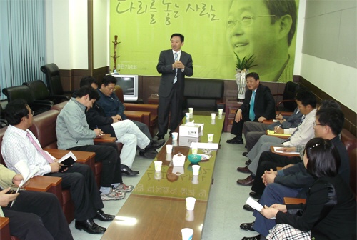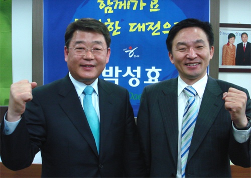 한나라당 원희룡 최고위원(양천갑)이 4월 30일 밤 10시께 박성효 대전시장 후보 선대본부를 깜짝 방문해 격려했다.
