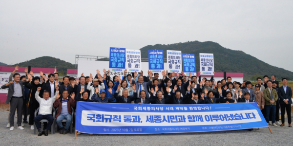 이날 참석자들은 국회 세종의사당 시대가 제대로 막을 올릴 수 있도록 민주당과 시민이 함께 열어가겠다고 파이팅과 만세를 외치고 마무리했다.