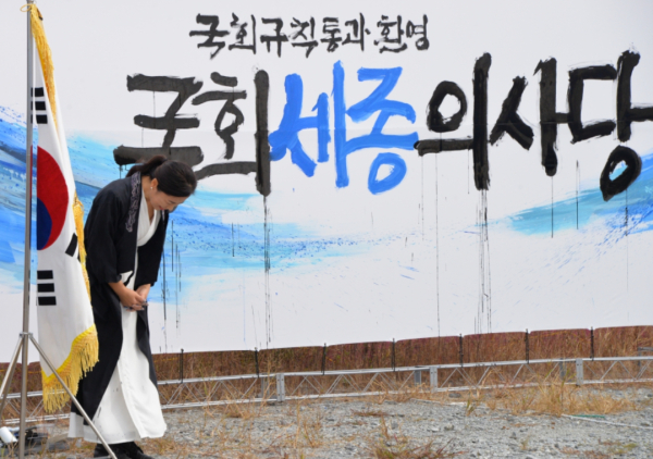 김순자 청보리 캘리작가는 오프닝 행사로“국회규칙 통과 환영, 국회 세종의사당”라는 '캘리그라피 퍼포먼스'를 선보였다.