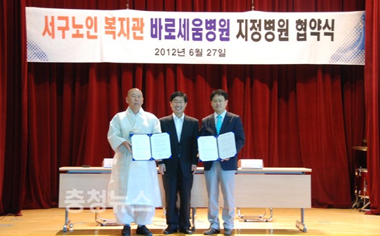 대전시 서구노인복지관(관장 장곡스님)과 바로세움병원(원장 황인석)이 27일 오후 1시 서구노인복지관에서 지정병원 협약식을 체결했다.