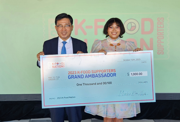 행사장에서 김 사장은 올해의 명예 서포터즈로 선정된 ‘2023 K-푸드 서포터즈 그랜드 앰배서더’를 시상하고 부상 1천달러와 함께 축하 인사를 전했다.
