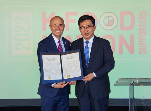 김 사장은 행사장에 참석한 제이시 제튼(Jacey Ray Jetton) 텍사스주 하원의원과 라이언 알터(Ryan Alter) 오스틴 시의원에게 직접 한국식품의 가치와 우수성에 대해 설명하고, 미국 동서부지역에 집중된 K-푸드 소비 저변을 텍사스를 중심으로 한 미국 중남부지역까지 확대되도록 K-푸드에 대한 관심과 지지를 당부했다.