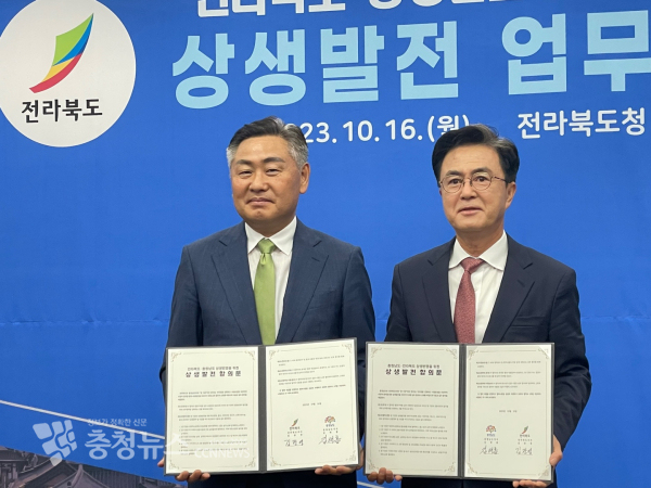 김태흠 충남지사는 이날 전북도청 종합상황실에서 김관영 전북지사와 ‘상생 발전 합의문’을 체결했다.