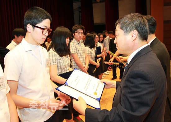 지난 12일 대전시청 대전인재장학금 시상식에서 대전고등학교 3학년 8반 김보현 학생이 장학증서와 대전인재 육성장학금 70만원을 수여받았다.