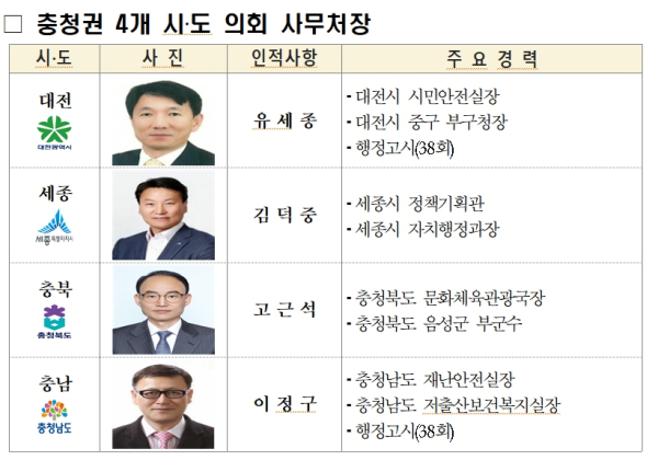 충청권 의회 협의체는 초광역의회 구성 논의를 위해 지난 6월에 4개 시·도의회 운영위원장과 사무처장을 중심으로 구성돼 규약 협의와 시·도 의회 간 연계·협력 방안 등을 논의해 왔다.