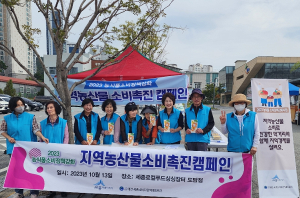 [충청뉴스 최형순 기자] 사)대전·세종소비자공익네트워크(회장 도정자)는 2023 농식품소비정책강화사업의 일환으로 세종로컬푸드 싱싱장터 도담점에서 “지역농산물 소비촉진 위한 홍보캠페인”을 전개해 큰 호응을 얻었다.
