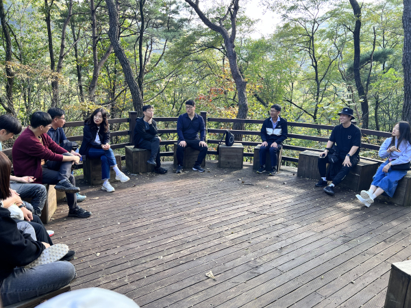 국립산림치유원 솔향기숲길에서 ‘마음보듬 숲 캠프’ 참가자들이 ‘숲 TALK’를 하고 있다.