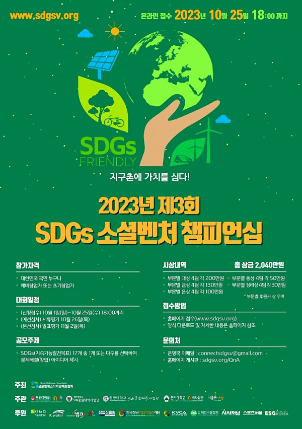 신청 기간은 오는 25일까지이며, 홈페이지(https://www.sdgsv.org)를 통해 접수할 수 있다.