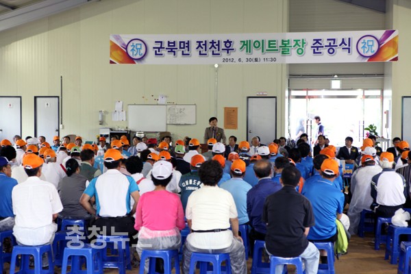 금산군(군수 박동철)은 30일 군북면 두두리 게이틀볼장 현장에서 박동철 군수를 비롯한 이금용 군북면장, 박찬헌 군북면게이틀볼협회장, 주민 등 300여명이 참석한 가운데 준공식을 가졌다.