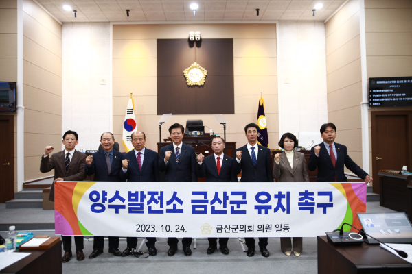 특히 군의회는 24일 임시회 본회의에서  ‘양수발전소 금산군 유치 촉구 결의문’과 ‘충청남도산림자원연구소 금산 이전 촉구 결의문’을 채택하고 양수발전소와 산림자원연구소를 금산에 유치하도록 강력히 촉구했다.