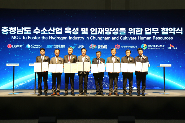 이번 협약에는 ▲단국대 ▲보령시 ▲충남테크노파크 ▲충청남도 ▲한국과학기술연구원 ▲한국중부발전㈜ ▲LG화학 ▲SK E&S㈜ 등 8개 기관이 함께했다.