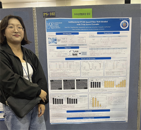 우인선 씨와 연구팀은 ‘Antibacterial PVDF-based Films Melt-blended with Twin Screw Extruder‘을 주제로 발표했다.