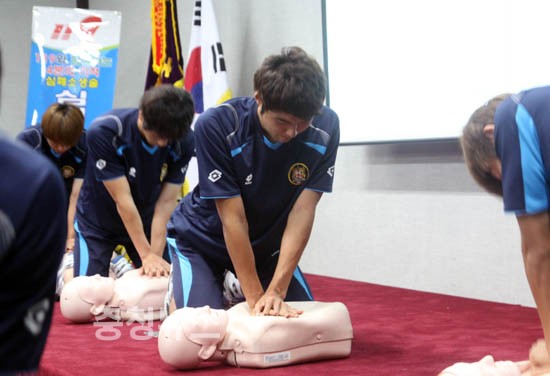대전시티즌 선수단이 9일 오전 심폐소생술(CPR) 교육을 받았다.