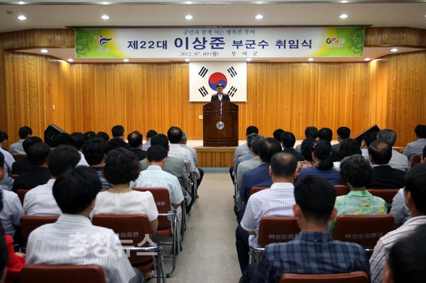 부여군(군수 이용우)은 지난 9일 오후 5시 여성문화회관에서 200여명의 공직자가 참여한 가운데 제22대 부여군 이상준(55세) 부군수의 취임식을 가졌다.