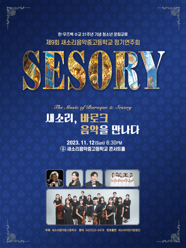 [충청뉴스 최형순 기자] 새소리음악중고등학교(교장 주미하)가 12일(일) 오후 6시 30분 5층 콘서트홀에서 한·우즈베키스탄 수교 31주년 기념 청소년 문화 교류를 위한 ‘제9회 새소리음악중고등학교 정기연주회’를 개최한다.