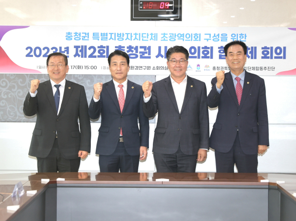 충청권 특별지방자치단체 합동추진단(사무국장 김현기)은 “그동안 '충청권 특별지방자치단체'의 양대축인 충청권 초광역의회를 구성하기 위해 4개 시·도의회 협의체를 구성하여 협의해 온 결과, 초광역의회 구성과 관련하여 대부분의 사항이 합의되었고, 마지막 의원수 배분에 대한 논의만 남아있는데 내년도 출범에 차질이 없도록 최선을 다하겠다”고 밝혔다.