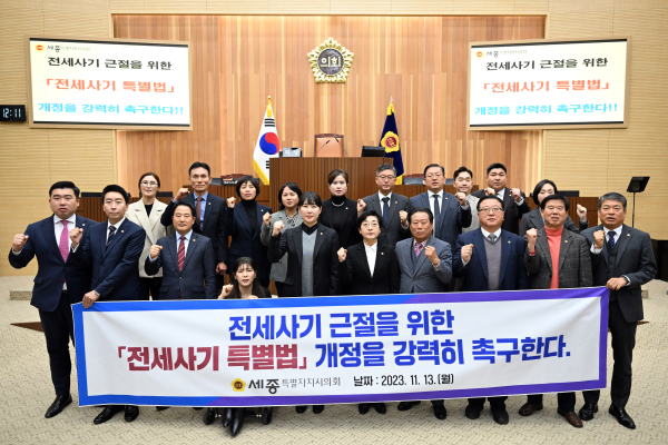한편, 세종시의회는 ‘전세 사기 근절을 위한 전세 사기 특별법 개정 촉구 결의안’을 국회의장과 국무총리, 국토교통부 장관, 행정중심복합도시건설청, 경찰청 등에 이송할 예정이다.