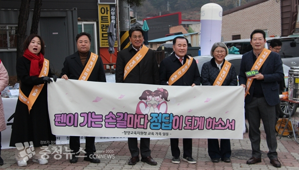 청양군청소년재단 마스코트 청록이가 등장해 눈길을 끌었으며 김돈곤 청양군수와 김명숙 충남도의원도 나와 수험생들을 응원했다.