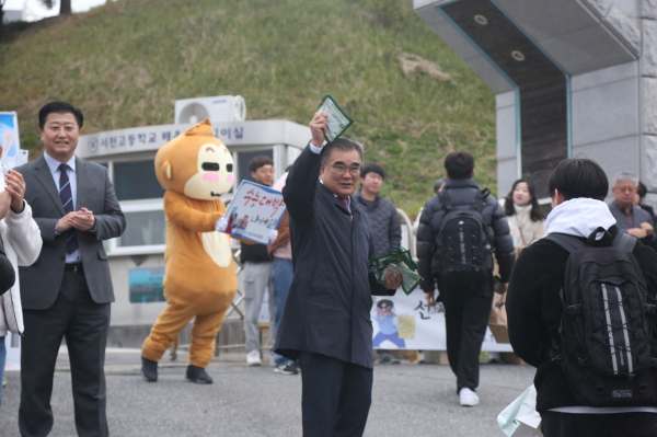 [충청뉴스 서천 = 조홍기 기자] 2024학년도 대학수학능력시험일인 16일 수험생들을 격려하기 위해 이른 아침부터 서천여자고등학교와 서천고등학교를 찾은 김기웅 서천군수가 밝은 표정으로 핫팩을 나눠주며 수험생들을 응원했다.
