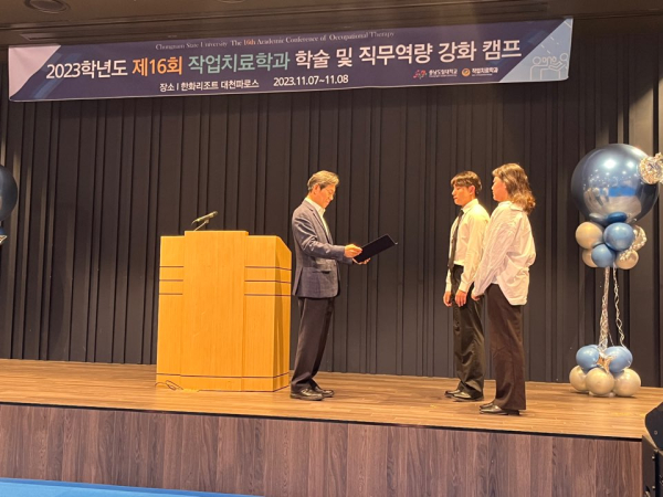 [충청뉴스 권상재 기자] 충남도립대학교 작업치료학과는 대한고령친화산업학회와 고령자치매작업치료학회가 공동 주관한 ‘추계국제학술대회’에 참가해 장려상을 수상했다고 밝혔다.