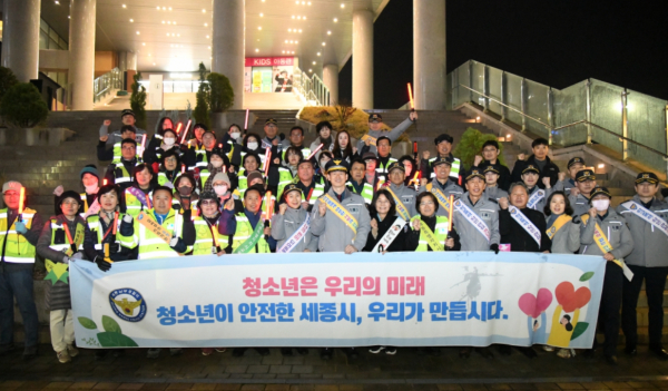 특히, 수능일인 16일에는 교육청·시청·자율방범대·시민 경찰학교·유해 환경점검단 등 100여 명이 참석한 가운데 나성동·새롬동·도담동 일원에 대해 청소년 비행 예방을 위한 지역안전순찰 등 합동 캠페인을 전개하였다.