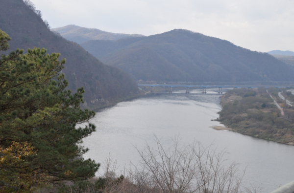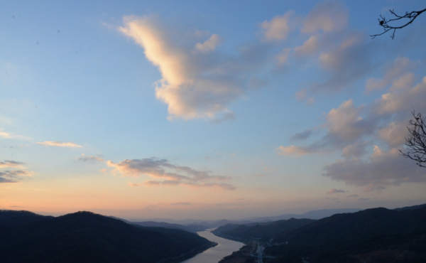 청벽산의 최고 조망 포인트인 일몰 전망대에 도착한다. 이곳 일몰 전망대에 서면 금강이 한눈에 내려다보이고 금강의 가장 아름다운 일몰 모습을 감상할 수 있다.