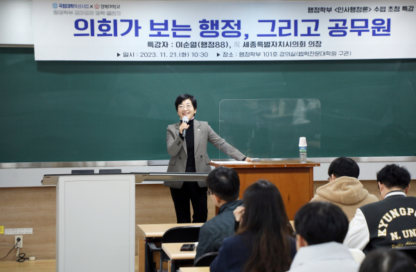 [충청뉴스 최형순 기자] 이순열 세종특별자치시의회 의장은 모교인 경북대학교에서 ‘의회가 보는 행정’을 주제로 지난 21일 특별강연을 진행했다.