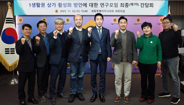 [충청뉴스 최형순 기자] 세종특별자치시의회(의장 이순열) ‘1생활권 상가 활성화 방안에 대한 연구모임(대표의원 임채성)’이 22일 제7차 간담회를 끝으로 활동을 마무리했다.