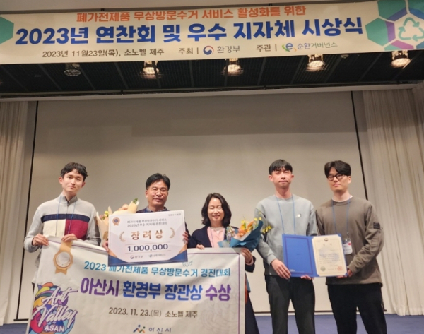[충청뉴스 박동혁 기자] 충남 아산시는 ‘2023년 폐가전제품 무상방문 수거 우수지자체 경진대회’에서 환경부 장관상을 받았다고 26일 밝혔다.