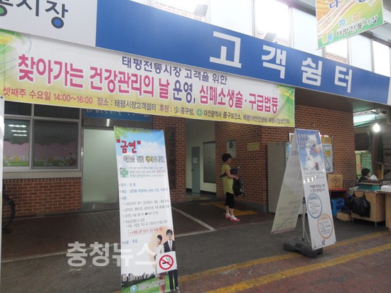 대전광역시 중구(구청장 박용갑)는 18일 태평시장 고객지원센터에서 매월 셋째주 수요일 오후 2시부터 4시까지 전통시장 상인 및 고객을 대상으로 `전통시장 건강관리의 날'을 운영했다.
