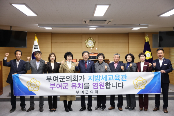 이에 부여군은 지방세교육관 후보지 공모에 역사문화·체험관광과 연계한 지방세교육관 건립을 주제로 제안서를 제출하였으며, 부여군의회는 군의원 모두가 서명한 행․재정적 지원 동의서를 함께 제출하였다. 부여군의회는 부여군과 함께 공공기관 유치를 위해 최선을 다하고 있다