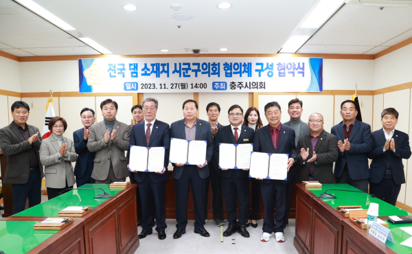 [충청뉴스 보령 = 조홍기 기자] 보령시의회(의장 박상모)가 27일 충주시의회에서 열린 ‘전국 댐 소재지 시군구의회 협의체’ 구성을 위한 협약식에 참석해 댐 주변 지역의 경제 활성화 등 지역주민 삶의 질 향상을 위한 협약을 체결했다.