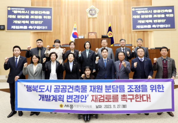 이에 세종시의회는 ”국가 정책에 대한 신뢰와 미래 가능성을 믿고 정착한 39만 시민들과 국가균형발전 실현을 염원하는 전 국민을 대신해 세종시의 특수성을 이해하고 반영한 분담률 조정안을 재검토해 달라“며 ”필수 불가결한 국가사업임을 인정하고 정부의 전폭적인 지원을 요청한다“고 밝혔다.