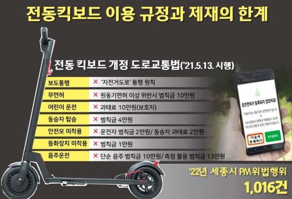 시와 교육청이 전동킥보드의 불법적 이용을 막기 위해 매년 예산을 투입해 교육과 캠페인을 지속하고 있지만, 이러한 노력이 무색할 정도로 킥보드 이용과 관련사고는 늘어만 가고 있다. 또한 관련 민원도 폭주해 작년에는 121건, 올해는 벌써 211건으로 집계되고 있다.