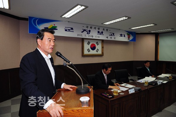 새누리당 홍문표(홍성예산) 국회의원은 23일 예산군 군정보고회에 참석해 당면 현안 논의에 나섰다.