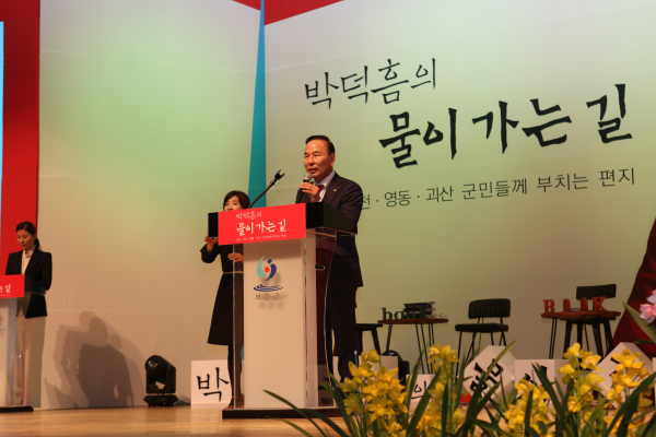 [충청뉴스 김거수 기자] 국회 정보위원장인 박덕흠 의원(보은‧옥천‧영동‧괴산군, 국민의힘)은 3일 보은문화원 대강당에서 ‘박덕흠의 물이 가는 길’ 출판기념회를 성황리에 마쳤다.