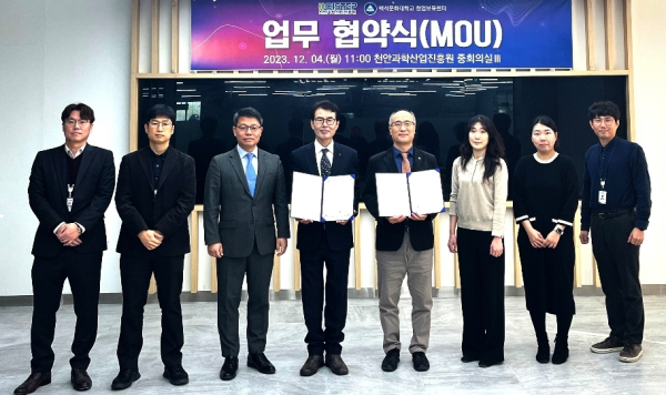 이날 양 기관은 천안지역 특화 산업에 기반한 양질의 창업 인재 양성과 창업 활성화 모델 발굴을 위해 천안과학산업진흥원 회의실에서 협력을 다짐했다.