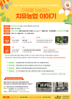 20일 ‘마음을 보살피는 치유농업 이야기’ 강좌에서는 성인 20명을 대상으로 세종시 민간정원 1호 ‘목인동’ 이용길 대표가 자연 속에 살며 몸과 마음을 치유하는 농업 일상 이야기를 전한다.