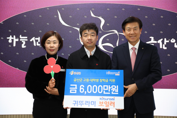 박범인 금산군수는 “우리 지역의 꿈나무들에게 미래를 바라볼 수 있는 희망을 주는 든든한 기업이 있음에 감사드린다.”라며 “귀뚜라미 그룹의 지원 취지를 반영해 금산의 미래를 이끌어갈 청소년들에게 성장의 밑거름이 될 것”이라고 감사 인사를 전했다.