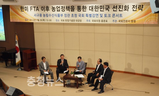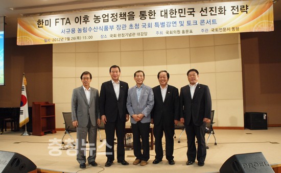 ‘한․미 FTA 이후 농업정책을 통한 대한민국 선진화 전략’을 마련하기 위한 행사가 홍문표 국회의원(새누리당, 예산․홍성)의 주최로 7월 26일, 15시 국회 헌정기념관 대강당에서 개최됐다.