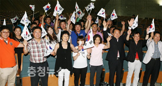 29일 새벽 배재대 아펜젤러기념관에 모여 런던 올림픽 남자양궁 단체전 3~4위전을 응원한 대전 시민들은 태극기를 흔들며 아쉬움을 달랬다.