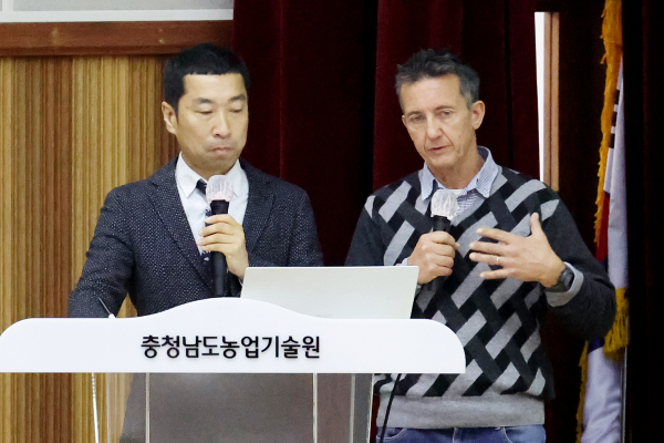 [충청뉴스 권상재 기자] 충남도 농업기술원은 8일 기술원 대강당에서 150여 명의 농업인이 참석한 가운데, 해외 전문가 초청 미래형 사과 다축과원 특별 강연을 개최했다.