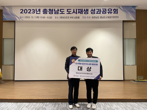 [충청뉴스 서천 = 조홍기 기자] 서천군이 충남도와 충청남도일자리경제진흥원 도시재생지원센터가 주최한 ‘2023년 충청남도 도시재생 성과공유회’ 우수사례 발표대회에서 대상을 수상하는 영예를 안았다.